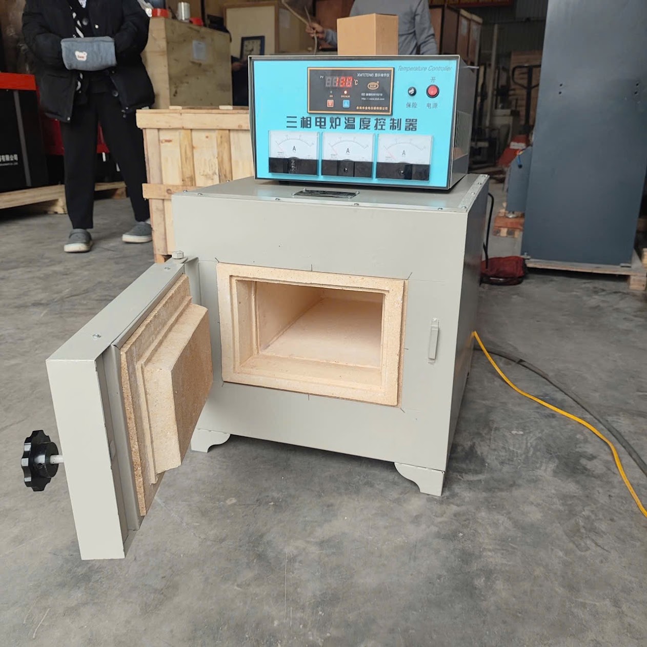 Cửa lò chắc chắn, đóng mở dễ dàng, giúp thao tác đưa mẫu vào và lấy mẫu ra nhanh chóng. Thiết kế tổng thể gọn gàng, phù hợp đặt trong phòng thí nghiệm, xưởng kiểm định hoặc khu vực nghiên cứu sản xuất.